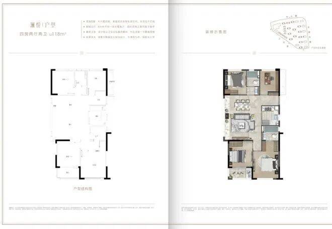 118㎡|澜悦|四房两厅两卫: 约118平户型最为惊艳, 全部边套设计。 如今市面上的四房如果要追求尺度,基本要130平以上;小面积四房,基本是3+1房设计,数字1大多代表的是像储藏间或衣帽间这样的功能房。但湖沁宸园的118平, 是完整四房格局 ,兼具尺度与功能性。