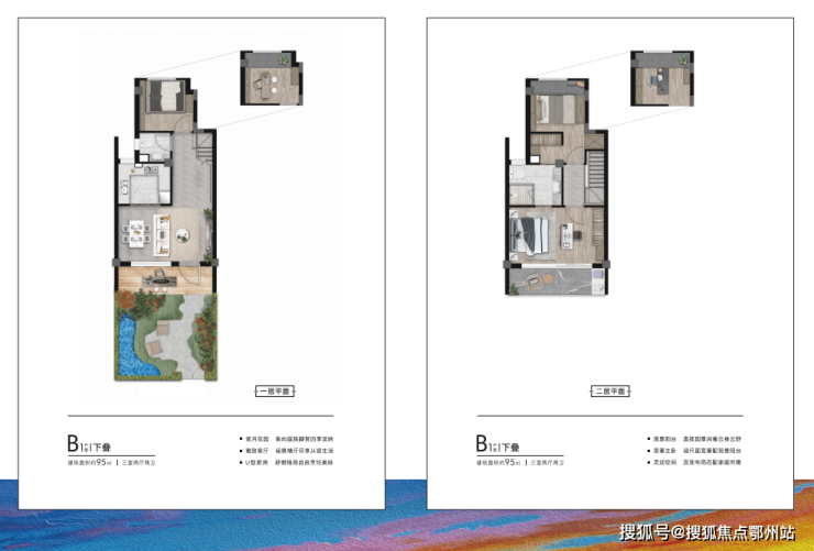 以上叠加均为独立入户设计,下叠拥享南北阔景花园、上叠有宽绰露台拥揽清风明月,并且上叠的电梯也都已给配置好了!