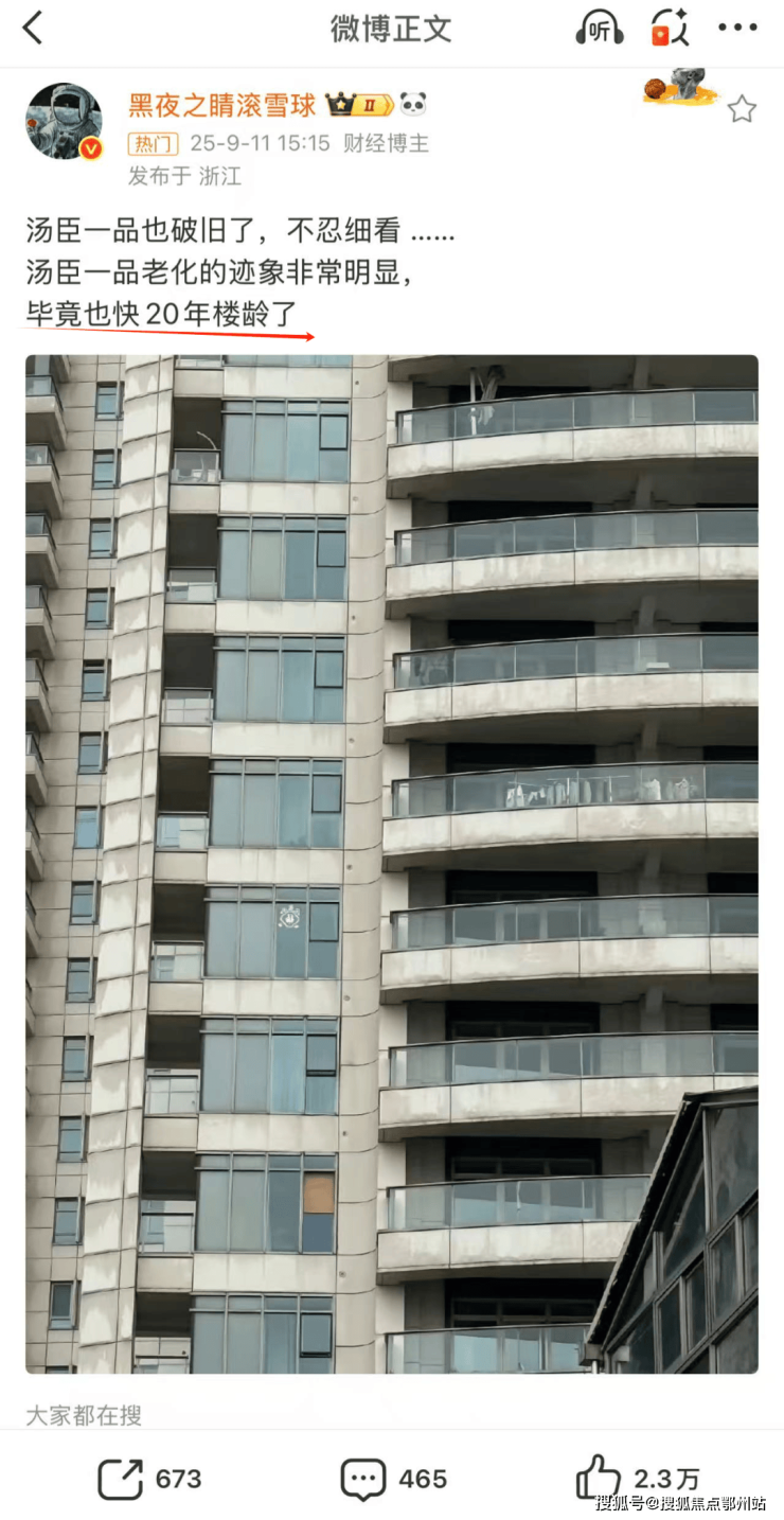 例如前不久被推上热搜的上海顶豪代表 【汤臣一品】,就因外立面采用的 铝板(容易老化显老),英雄迟暮!