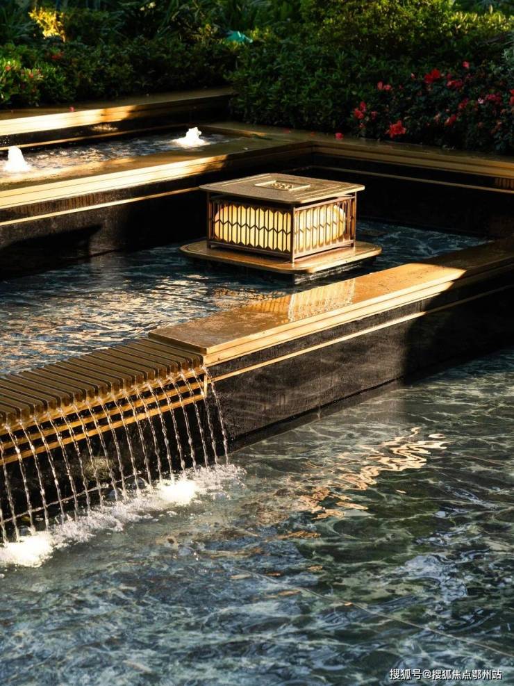 大堂地面也采用金世纪 水刀拼花工艺与 香格里拉黑大理石,辅以莫奈花园奢石背景墙,营造了非凡的气度。