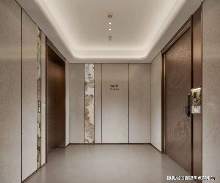 电梯厅融合 梵高印象岩板与超白洞石大面积的铺装,彰显出了细腻雅致!