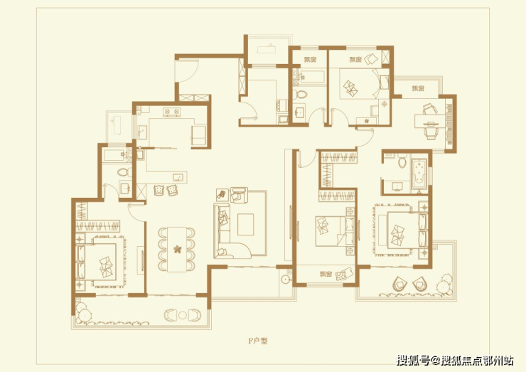 F户型 建筑面积约226㎡、5房2厅2厨3卫👇👇