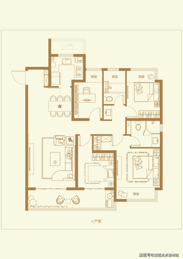 C户型 建筑面积约127㎡、4房2厅2卫👇👇