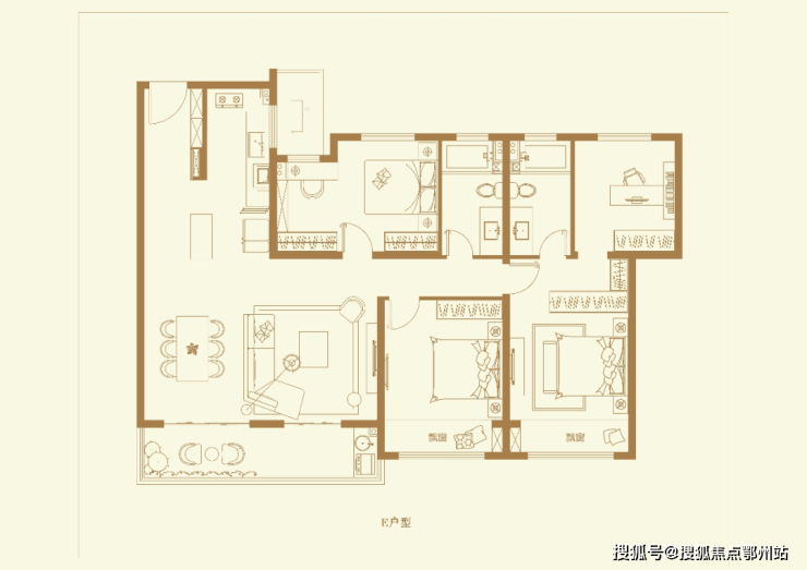 E户型 建筑面积约156㎡、4房2厅2卫👇👇