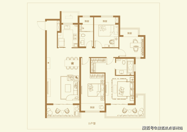 D户型 建筑面积约148㎡ 、4房2厅2卫👇👇