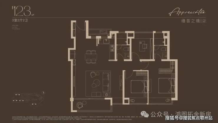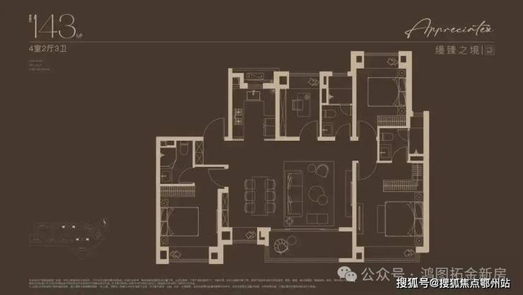 准一梯一户的配置,让业主独享入室前厅的过渡空间,玄关处的可定制收纳系统,让归家时刻剥离喧嚣,私密与尊崇感不言自明。步入室内,约14米南向四开间以无界视野拥抱阳光,LDKB一体化设计将客厅、餐厅、厨房与约7米宽幕阳台串联成通透的生活场域,无论是家庭聚会的烟火气,还是独处时的静谧,皆能找到理想场景。双奢阔套房设计则重新定义居住的从容:主卧套房以全景飘窗及酒店式卫浴空间,构筑私享领地;次卧套房兼顾长辈或子女的起居需求。南向双套卧配置,让多代同堂的生活既有温度又存边界。细节之处,一线精装品牌更显匠心:日立中央空调(或同档次品牌)、博世地暖(或同档次品牌)、迈迪龙新风(或同档次品牌)、高仪花洒(或同档次品牌)、恩仕(马桶)、高仪(卫生间龙头花洒)、弗拉卡(厨房龙头)、西门子三件套、怡口(净水器)……一切都在无声中诠释着塔尖生活的质感。