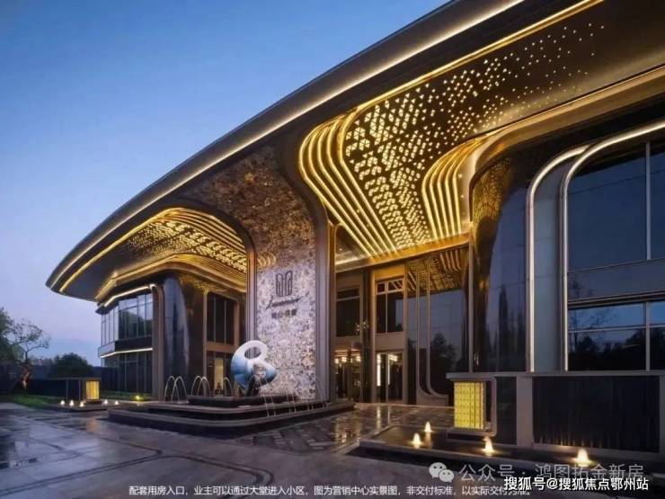 墙体采用约雪山蓝石材,搭配香槟色铝板,普拉达绿石材、安哥拉黑石材、真石漆保温一体板与大面积落地玻璃,叠水小品迎宾启幕归家礼序。景观雕塑,将“缦奢归璞”所追求的圈层礼制得以具象。敕造奢阔实景,境现嘉定主城高阶圈邻。