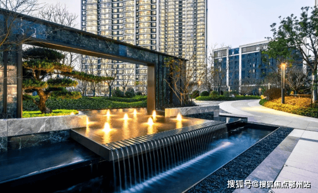 目光不自觉地被正中央的水景景墙吸引,为营造极致的品质感,项目不吝成本,将石材全部升级为普拉达绿奢石,如浪花般的纹理自然流畅,恢弘大气。罗汉松下水声汩汩,东方意韵的独特美感愈发浓郁。