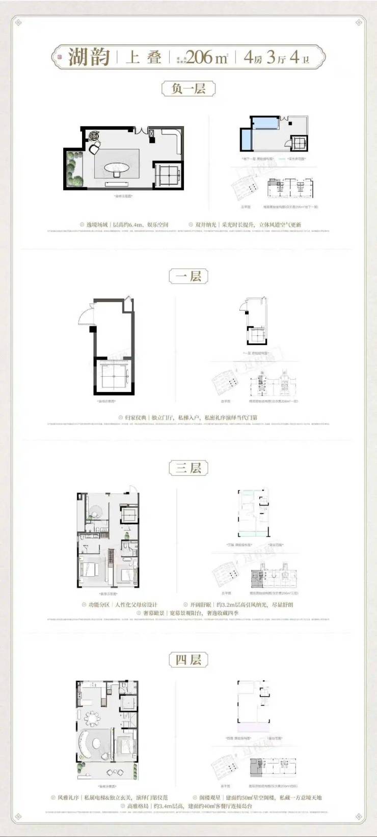 1.25超低容积率,淬炼出建发·瑞湖建面约185-205㎡藏品叠墅、建面约255-308㎡传世联排产品形态。