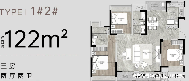 公摊约20%,双开门电梯,独享电梯厅,约5.7米的大开间客厅,南北双阳台,无论是单身贵族,还是二孩家庭或三代同堂,皆可满足。