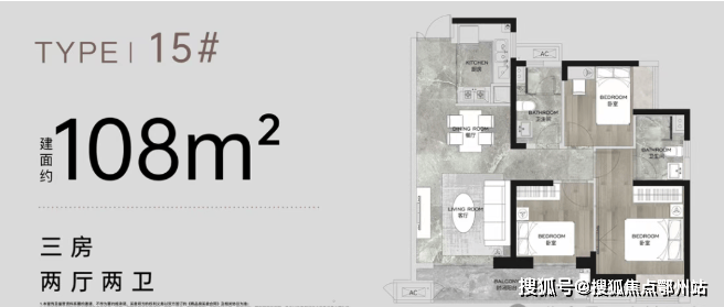 此外还有入门级的建面约108㎡三房,同样是大面宽,大尺度的空间,在面积与功能间得到较好平衡,上车门槛更低。