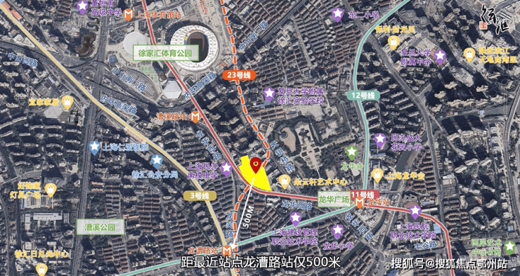 该地块位于徐汇内中环,强生花苑南面,龙华西路东侧,上海师大附中附属龙华中学西侧。出让面积达2公顷,容积率1.59,土地为商品住宅用地性质。11号线和23号线地下贯穿,地块东侧还有龙华烈士陵园和龙华寺。