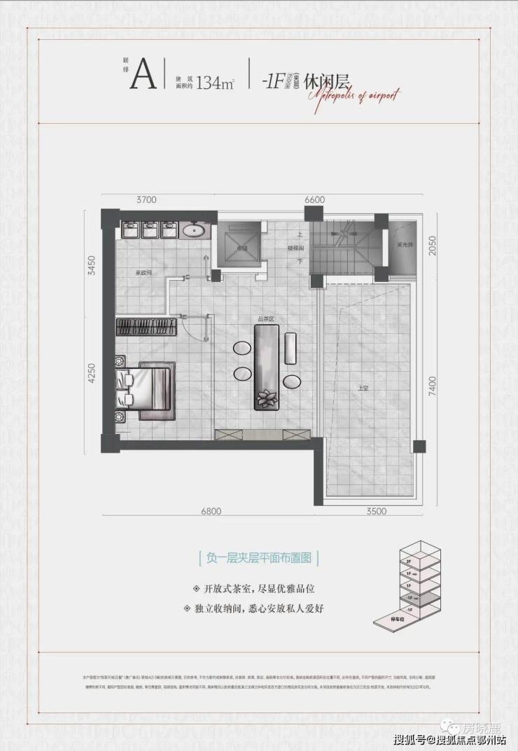 -1F“归家层”实际为地下第2层,为车库(每户2个)、会客厅、棋牌室、影音室(或KTV)、健身室等;