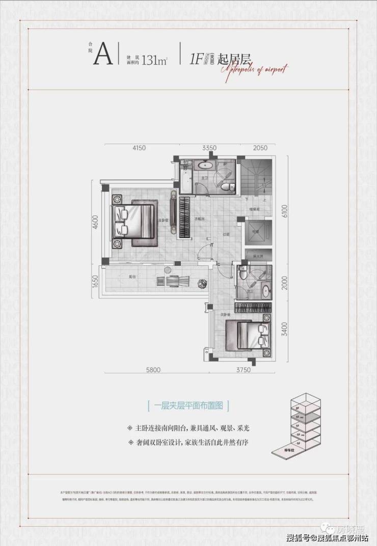 ① 合院A户型,建面约131㎡、5室4卫3厅,实际使用面积约379㎡