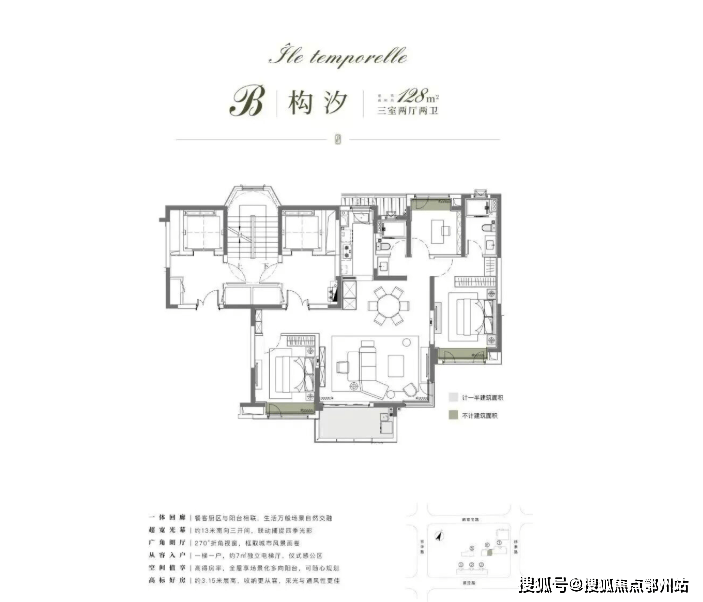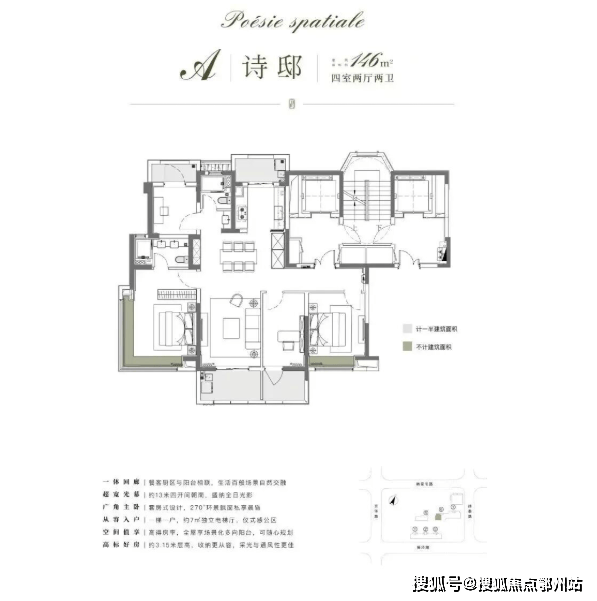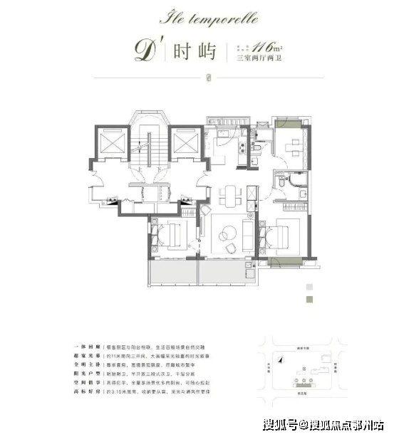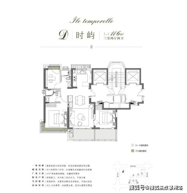 项目以116㎡户型为起步,纯粹改善型社区,所有户型都做到了约3.15米的层高,