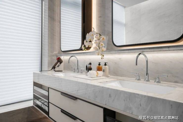 主卫选用 劳芬、当代、卡德维等顶配装标,在2万+大平层中找不到第二个。并且御钱湾并不是为了堆配置,都是从健康出发,当代的黄铜龙头十年不锈,卡德维浴缸的抗菌釉面,不会发黄,是婴儿水中分娩浴缸。