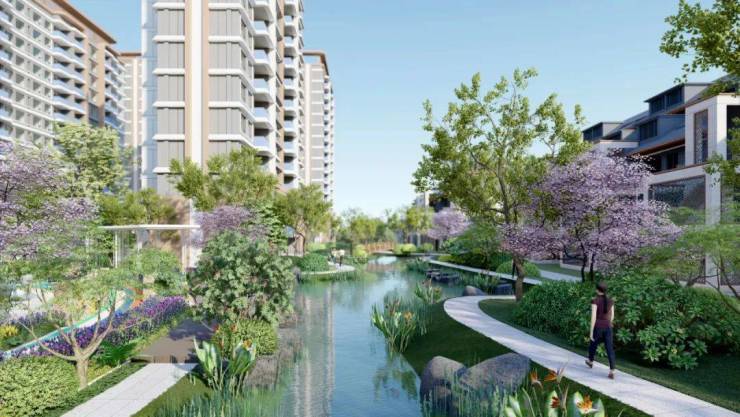在奉贤目前在售及待售的含有叠墅产品的楼盘中,中国中铁·世纪尚城叠墅占地面积更大,这也使得项目有机会打造出“内外双公园、五大园林体系”滨水岛居墅区!项目紧邻10万方贝港滨水生态公园,天然坐拥绿色生态大境,空气清新、景色宜人,尤其是在都市生活当中,回归自然,更显得弥足珍贵!
