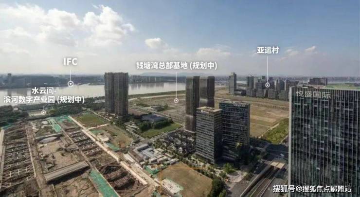 从世纪国泰中心窗前往外看:近处是滨河数字产业园(水云间)、大小莲花碗、杭州之门、奥体印象城等城市坐标。