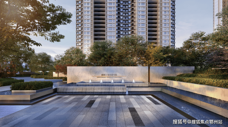 一棵价值近100万, 约7米高的日本进口大红枫,成为下沉式会所的三个立面视线对景,让人眼前一亮。源于书卷灵感的巨型镜面水幕墙,传达“书香世家”的寓意。 水幕墙立面的进口安哥拉黑石材,与三层跌水相映衬,恢弘之感呼之欲出。