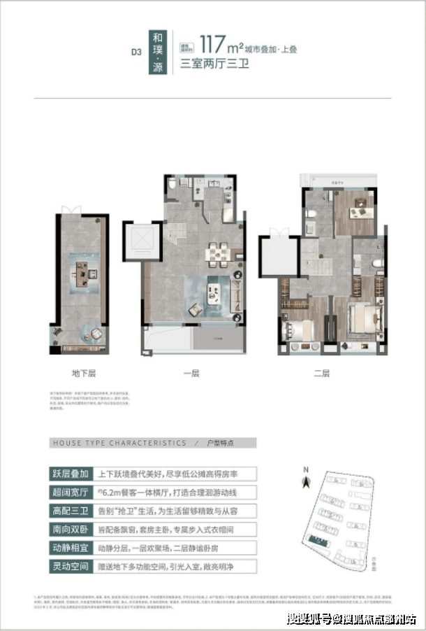 对于新时代都市人而言,注重自我生活品质的同时,也为家人考量兼容且独立的成长型生活结构,中交.松香源著约117-121m²城市叠加户型,