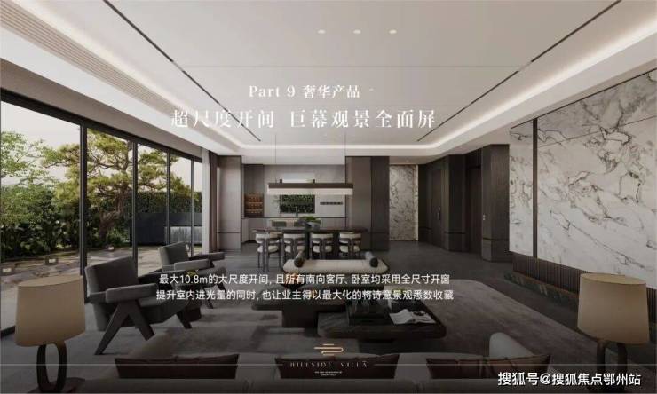 空间设计:一层空间创新 LDKG 客餐厅阳台一体化设计,搭配超高窗墙比和全景落地窗,打造 270° 巨幕级观景视野。部分户型花园庭院面积达约 180㎡,270° 阔奢玻璃面与庭院相交辉映。还创新打造双庭院设计,地下室设有下沉式庭院。