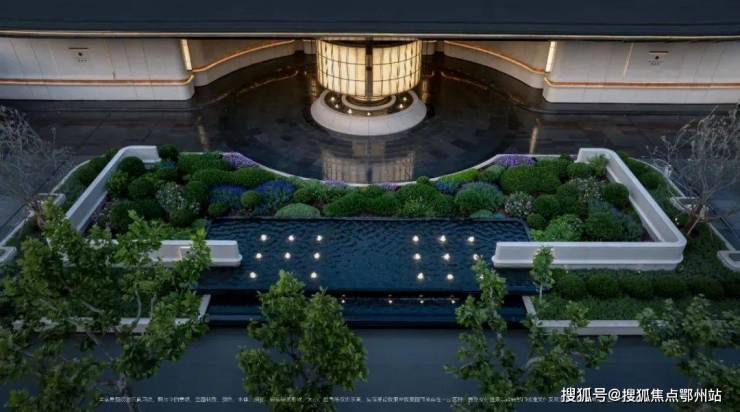 社区景观方面,项目运用室内手法室外化设计构想, 将垂直景墙、悬浮观景台与叠水景观立体穿插,极具立体感,并随时拾获国际范与奢华体验。