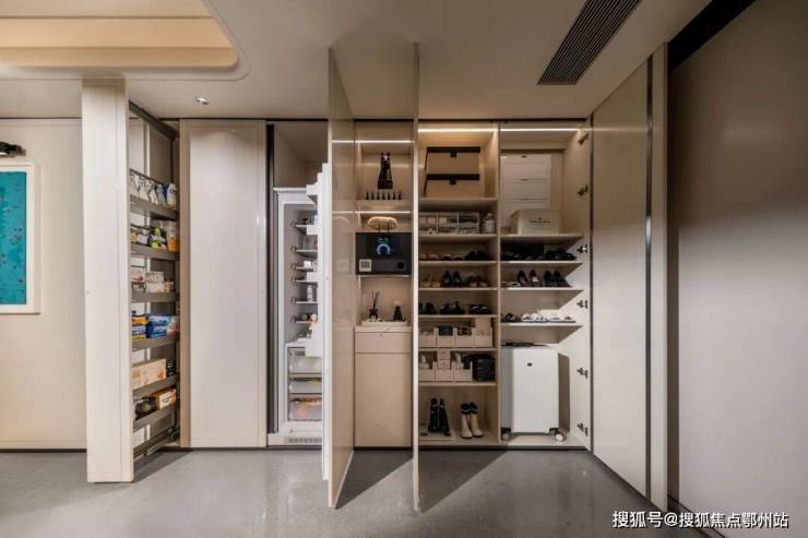 项目的收纳系统也做得让人叹为观止。以124户型举例,步入玄关,就有约6米长的交付空间装得下生活的所有琐碎。