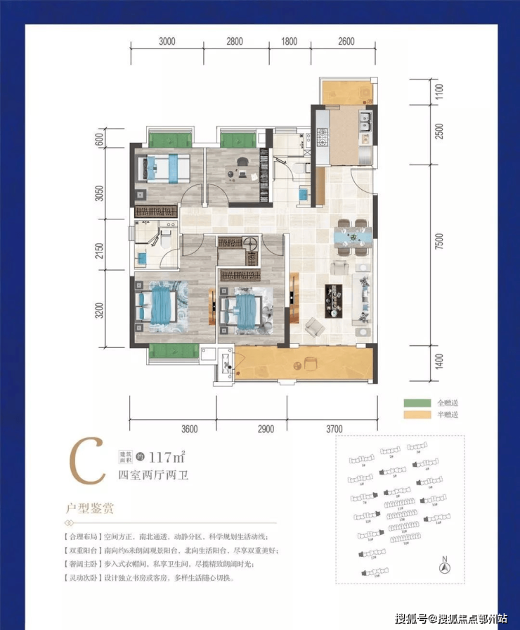 阳台半赠送、飘窗全赠送,更多赠送面积