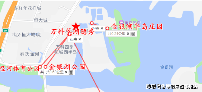 万科翠湖隐秀位于环湖路与新桥路交汇处,在楼市划分中属于金银湖环湖路板块,行政划分属于东西湖区。
