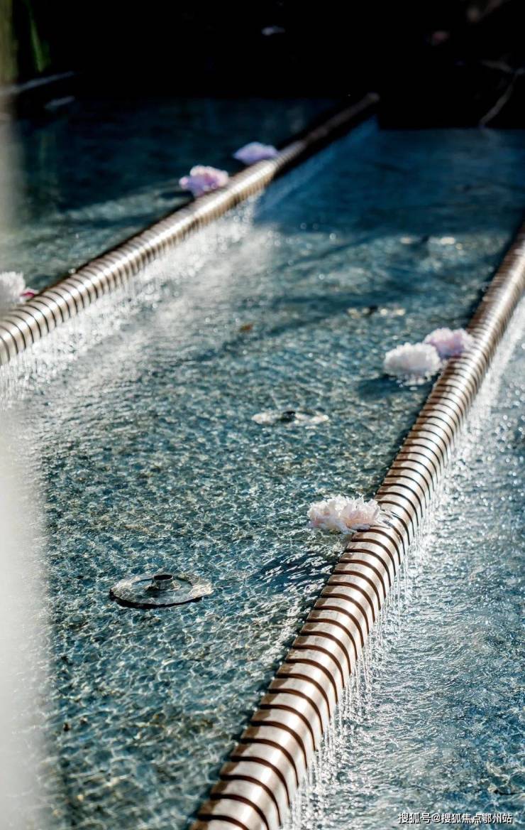 光影莲廊,还原莲溪古镇枕水而居的历史肌理,设计“莲花纹”景观连廊,从地面铺装到莲花屏风的⼀路相莲。寓意步步生莲,寄托一路美好、进步与成就的生活愿景。