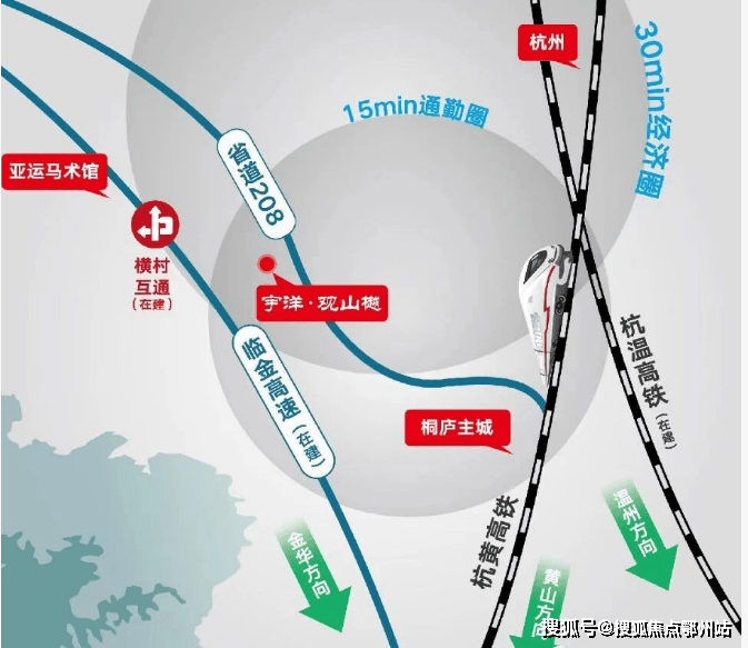 2 :区域 助推融杭先锋军桐庐2022年迎来“双高铁时代”,一举成为环杭要塞城市,并入杭州组团发展模块,更有省道208、临金高速(在建)串联同心发展,交通的多元化让桐庐与杭州市区,及其他城市的交流增添无限可能。