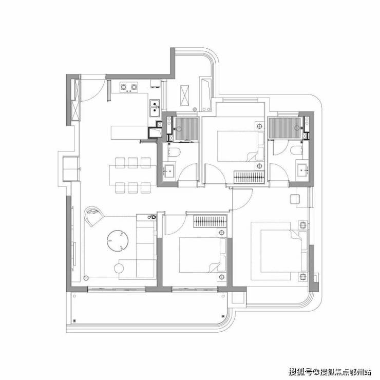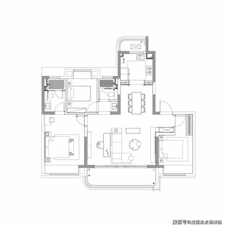 E´户型 建面约118㎡ 三室两厅两卫(高层)