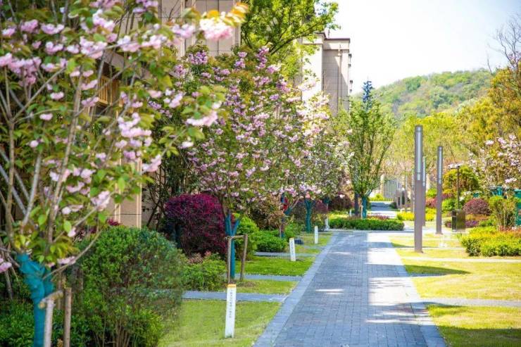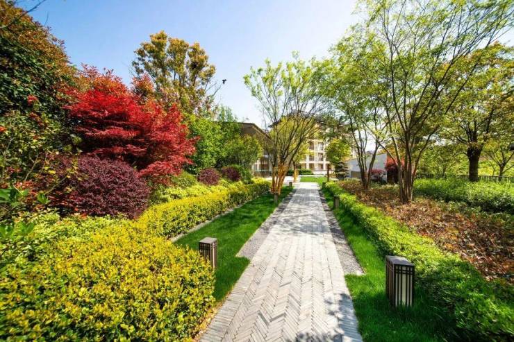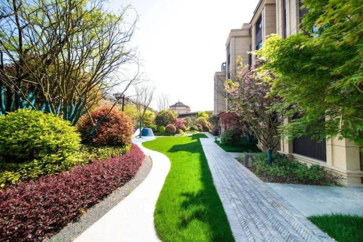 中轴景观,草坪、树阵等层层递进,一步一景,一呼一吸之间皆是新鲜空气,眼见四时繁花盛开。