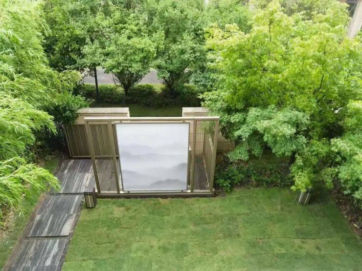 走过一段幽长的林荫小道,来到院门,有一道屏风,仪式感十足。