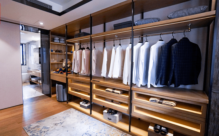 自带超大衣帽间,一扇专属化妆镜,一整面衣柜墙,品质感一下子拉满。