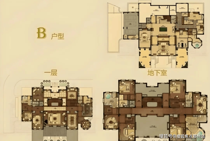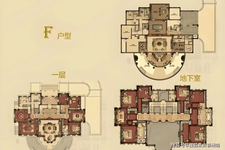 【F户型】巴黎学院派风格,1351㎡(地下室498.11㎡),吸收古罗马、古希腊建筑设计精华,延续至今。美学严谨,绮丽风范,恰似莫扎特之圆舞曲,俨然大家风范。