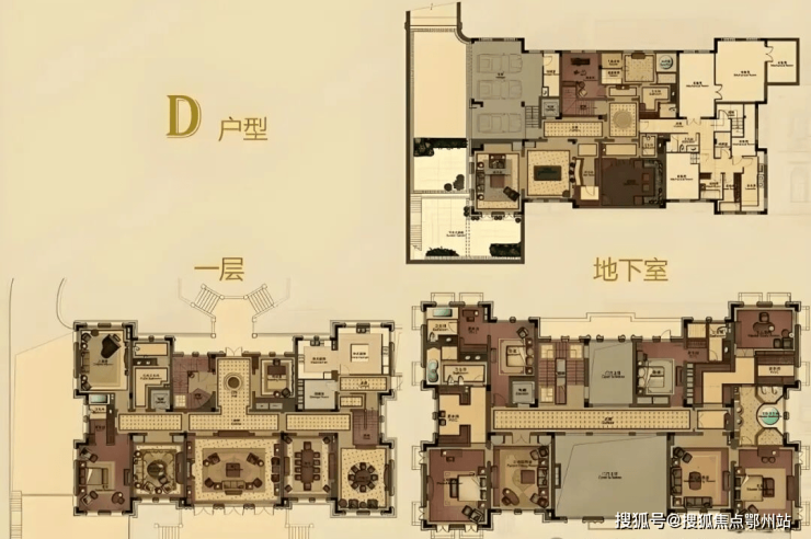 【D户型】地中海风格,1317.42㎡(地下室467.05㎡),源于十六世纪文艺复兴之宫殿设计,其风格与欧洲建筑特色融会贯通,逐渐演变,成为经典浪漫符号。