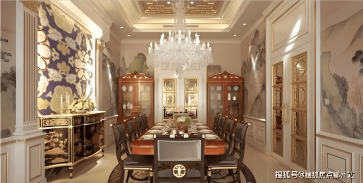 除了这栋奢华的样板房,其他别墅装修的奢华程度也都超乎想象, 随便拿出一栋,内部精致华丽程度都堪比宫殿。比如这栋英国亚当风格别墅的内部装修,延续建筑亚当风格之外,点缀了少量中国元素,精致大器之余,又底蕴十足。