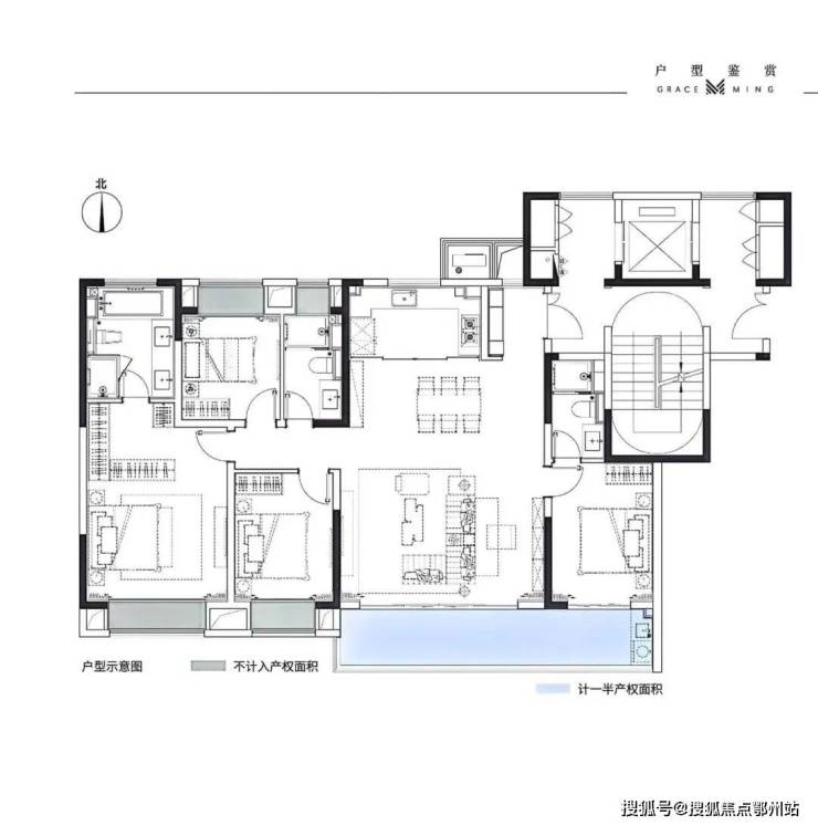 户型面积:建面约143㎡、170㎡、203㎡