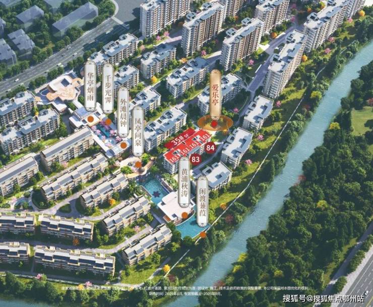 建发「宸系」中式作品,铝板与玻璃幕墙外立面,配园林景观。约1150套房源高低配,限高40米,含小高层、洋房、叠墅产品,满足刚需与改善需求。