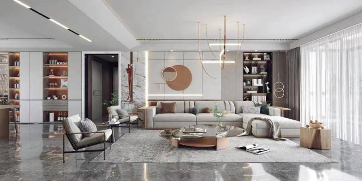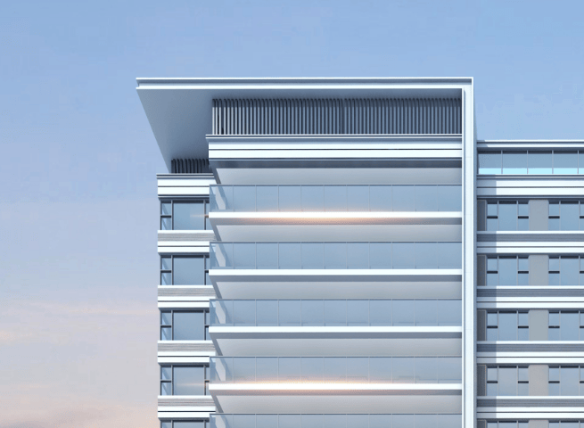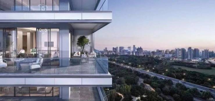 其立面选取现代简约风,高级灰色调搭配,大面积玻璃运用,园林引入温润森系的现代风格景观体系。