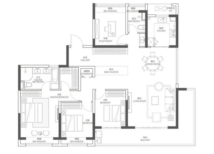 建面约180㎡户型采用BLDK一体开放式布局,打造无界家庭生活厅。