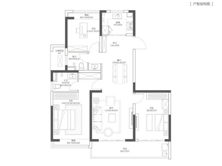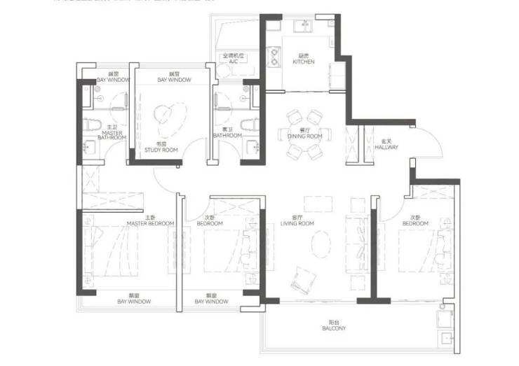 建面约125㎡几乎没有过道设计,空间利用率极高, 南向连接约7米双联阳台,室内全明通透。