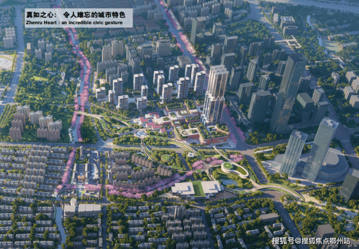 值得关注的是,真如翠谷用了TOD+EOD的创新开发模式:西侧大场浦河和生态公园组成T字形绿轴生态,约8万方的绿化空间形成“丘水绿链”。而环宇玖章南侧整紧挨着仓廪市集,西侧又直面中央丘谷,正好占了规划里的核心优势位。