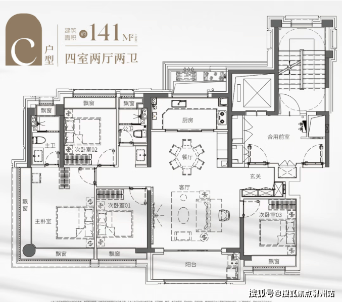 全屋足足 四个飘窗设计,带来更多的采光和更好的通风,让你无需羡慕老洋房的采光。