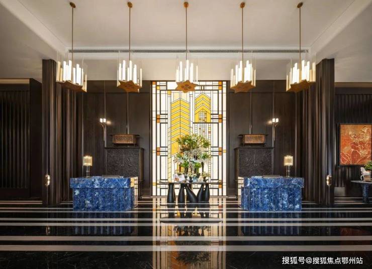 细节之处,光是一个接待台,就采用了产自玻利维亚约4500米海拔的高原矿脉—— 玻利维亚蓝石材,是世界上储存量最少的石材之一,非常珍贵;而大堂的柱子,也是巴西乌金奢石;