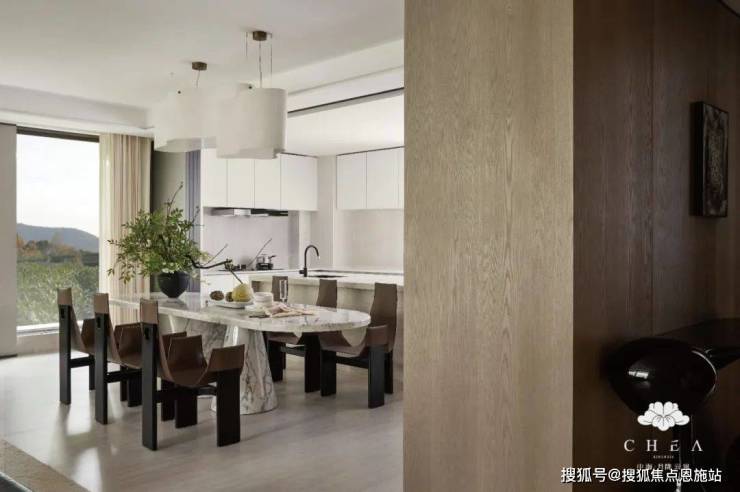 5.【观景客餐厅面面皆景】巨幕观景客餐厅,全落地通透超大玻璃,辅以270°跑道阳台,共享茶山、日落与晚风