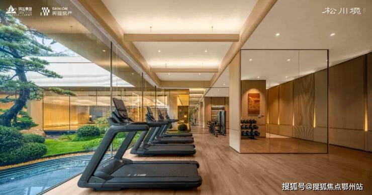 下楼到 「松氧馆」 健身房慢跑,透过270°全景玻璃幕,心赏 「澜庭」 下沉式庭院,约7米高溪山流瀑,5棵黑松高低错落,勾画出艺术馆般的静逸场域。松风水雾间,运动不再是「面壁思过」,在沉寂中厘清思绪,迸发万千灵感火花,每一次吐纳都是无尽疗愈。