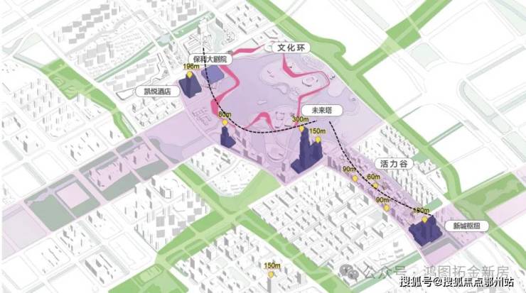 未来塔:位于CAZ的正中央,建成约300米,将成为嘉定甚至是上海西北第一高楼,是真正的C位地标