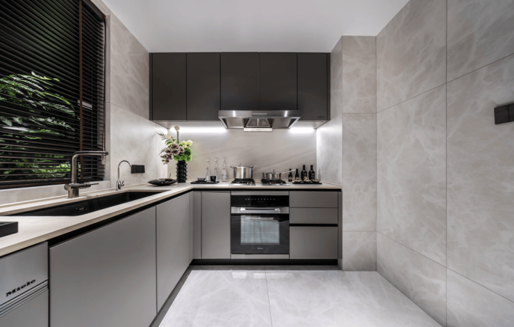 厨房配置了国际顶级厨电品牌之一的 美诺Miel e (或同等档次品牌):蒸&烤一体机,两灶三眼灶台,洗碗机,抽油烟机及冰箱的5件套超高规格,全面提升厨房“含金量”。